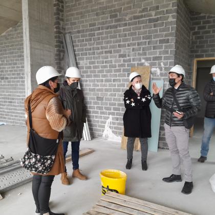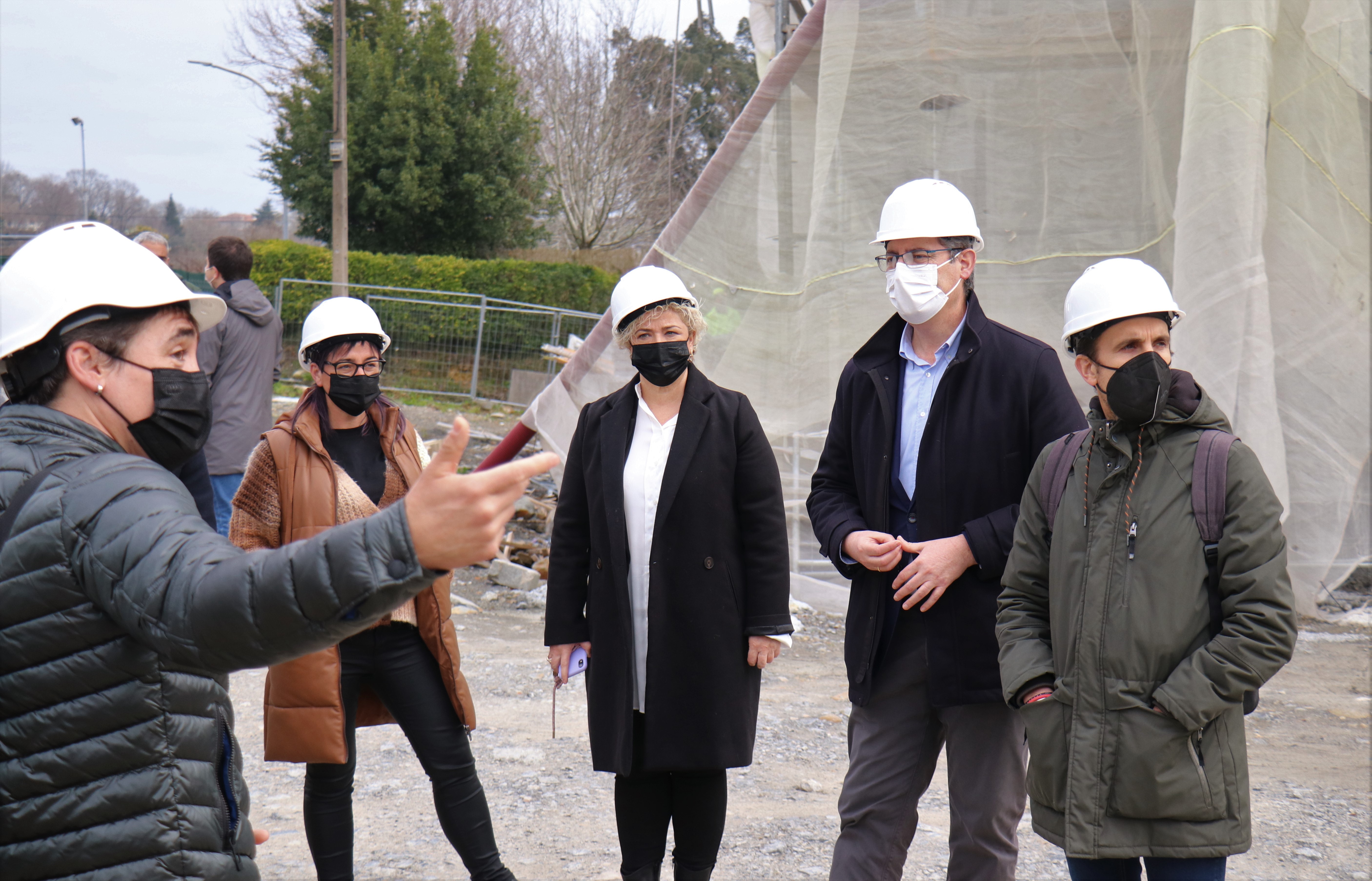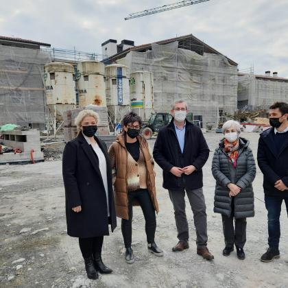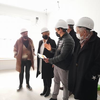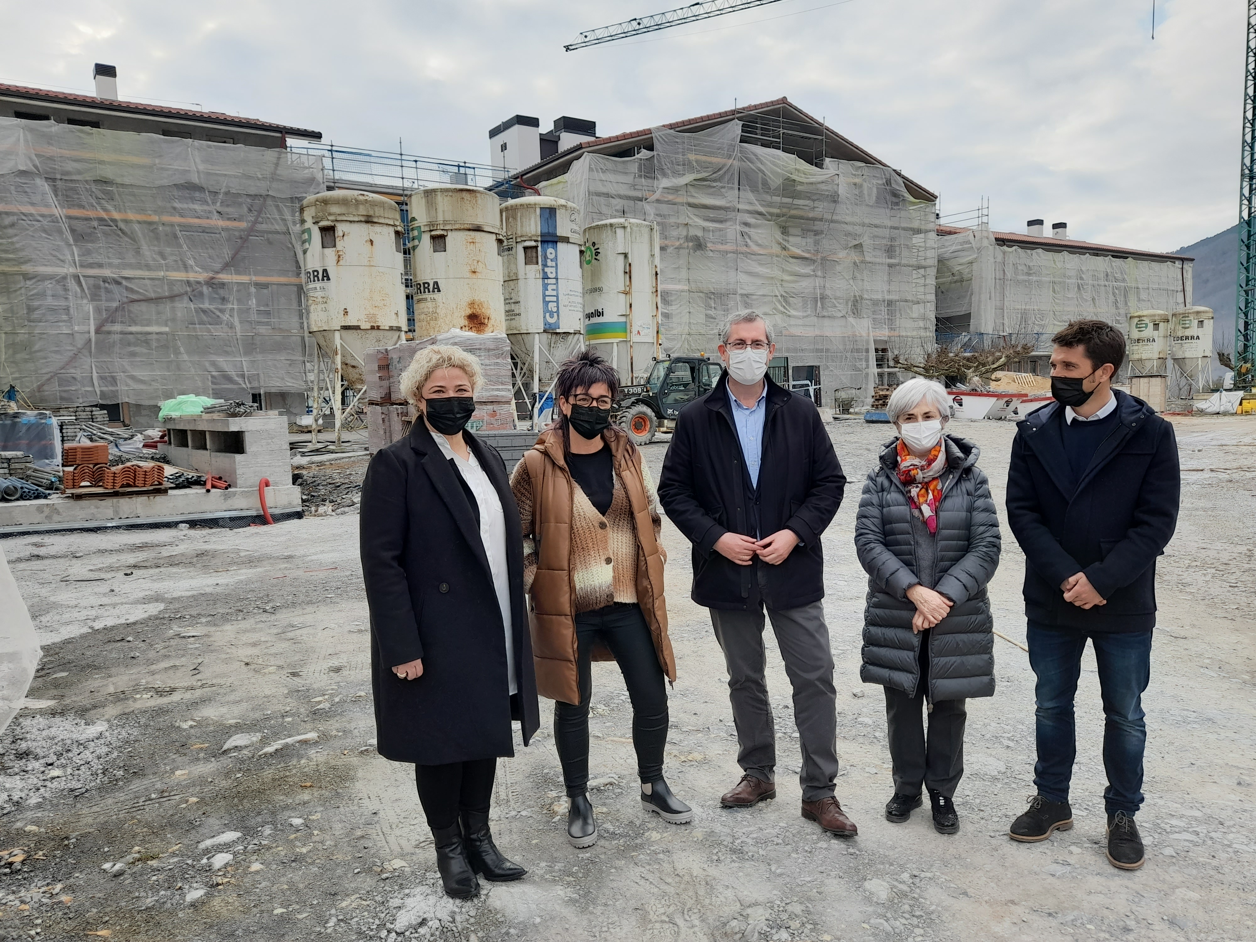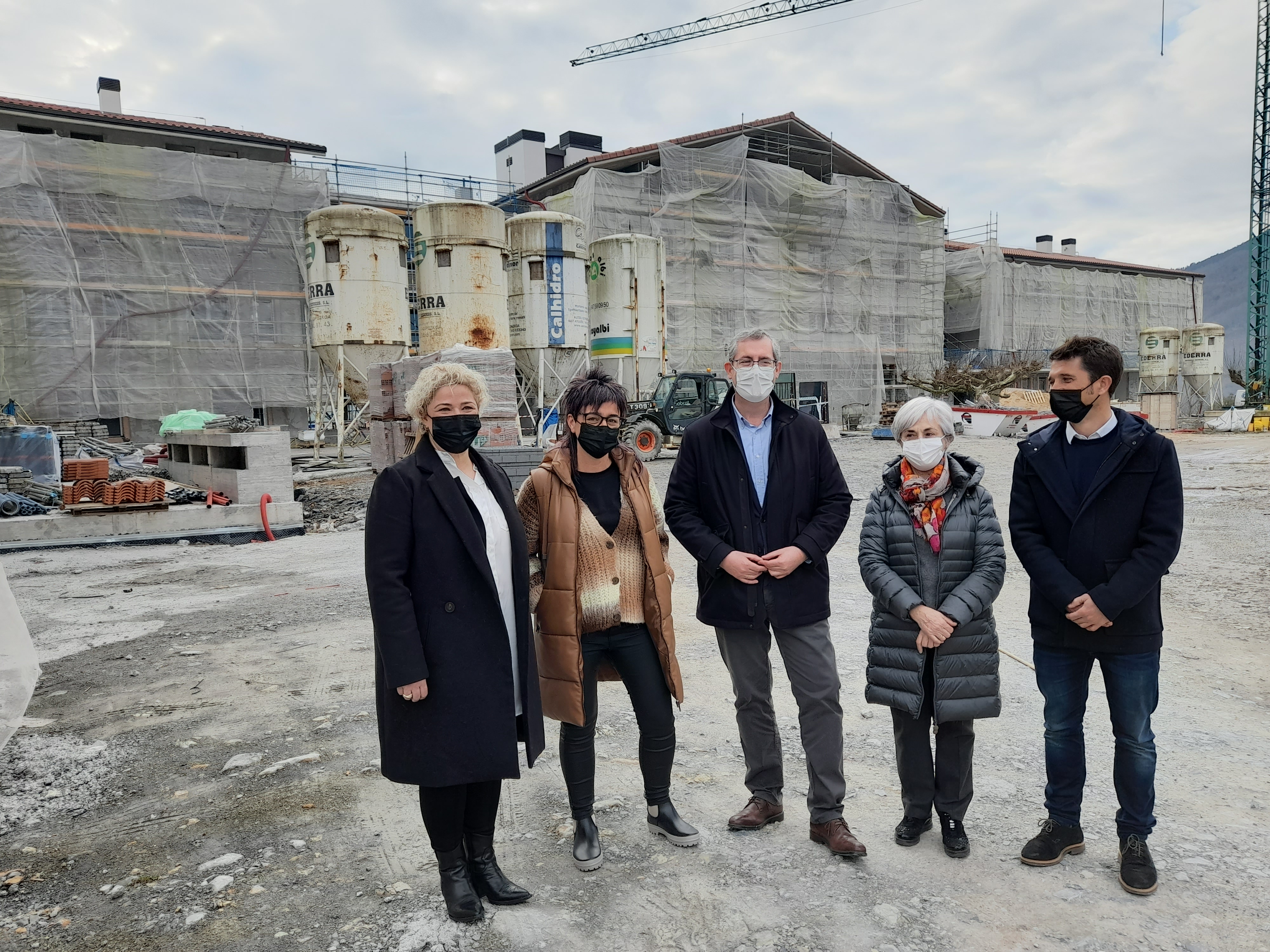 (Usurbil, February 4, 2022) By the end of 2022, the new residence that Matia is developing in Usurbil, in collaboration with the Provincial Council of Gipuzkoa and the Town Council of the town, will be up and running. It is a "pioneering and innovative" project, which began its construction in June 2020, and which will house 110 homes for 127 elderly people, "an example of where the model of care in Gipuzkoa is evolving", based on reduced living units that favor the autonomy and personalized attention of the residents. This was explained by the deputy general of Gipuzkoa, Markel Olano, during a visit this morning to the construction site of the new center, where he was accompanied by the deputy for Social Policies Maite Peña, the mayoress of Usurbil Agurtzane Solaberrieta, the president of the Board of Trustees of Matia Mari Carmen Garmendia, the general director of Matia Gerardo Amunarriz, and part of his team.