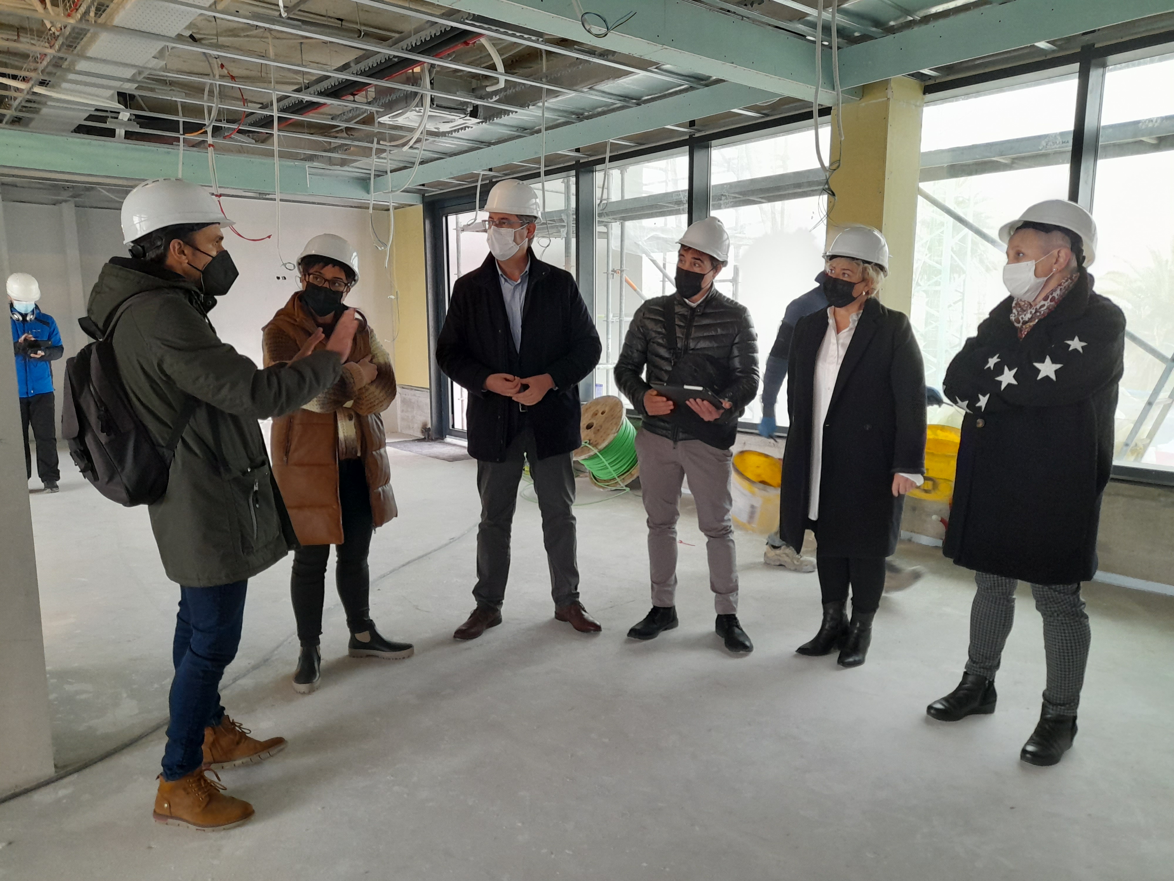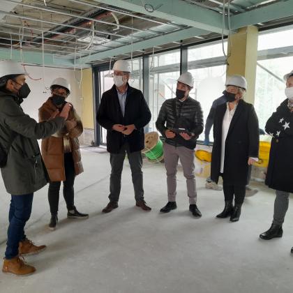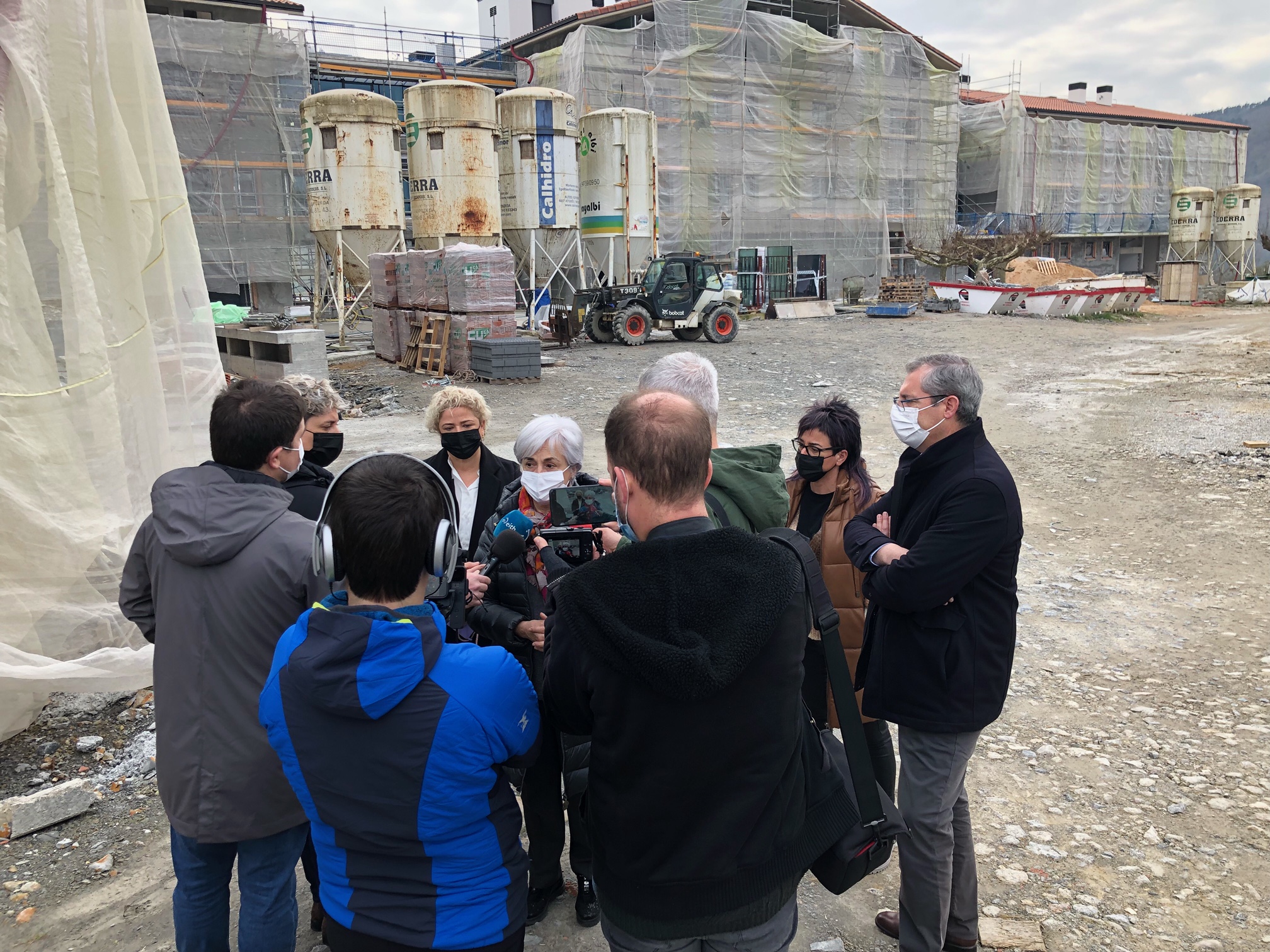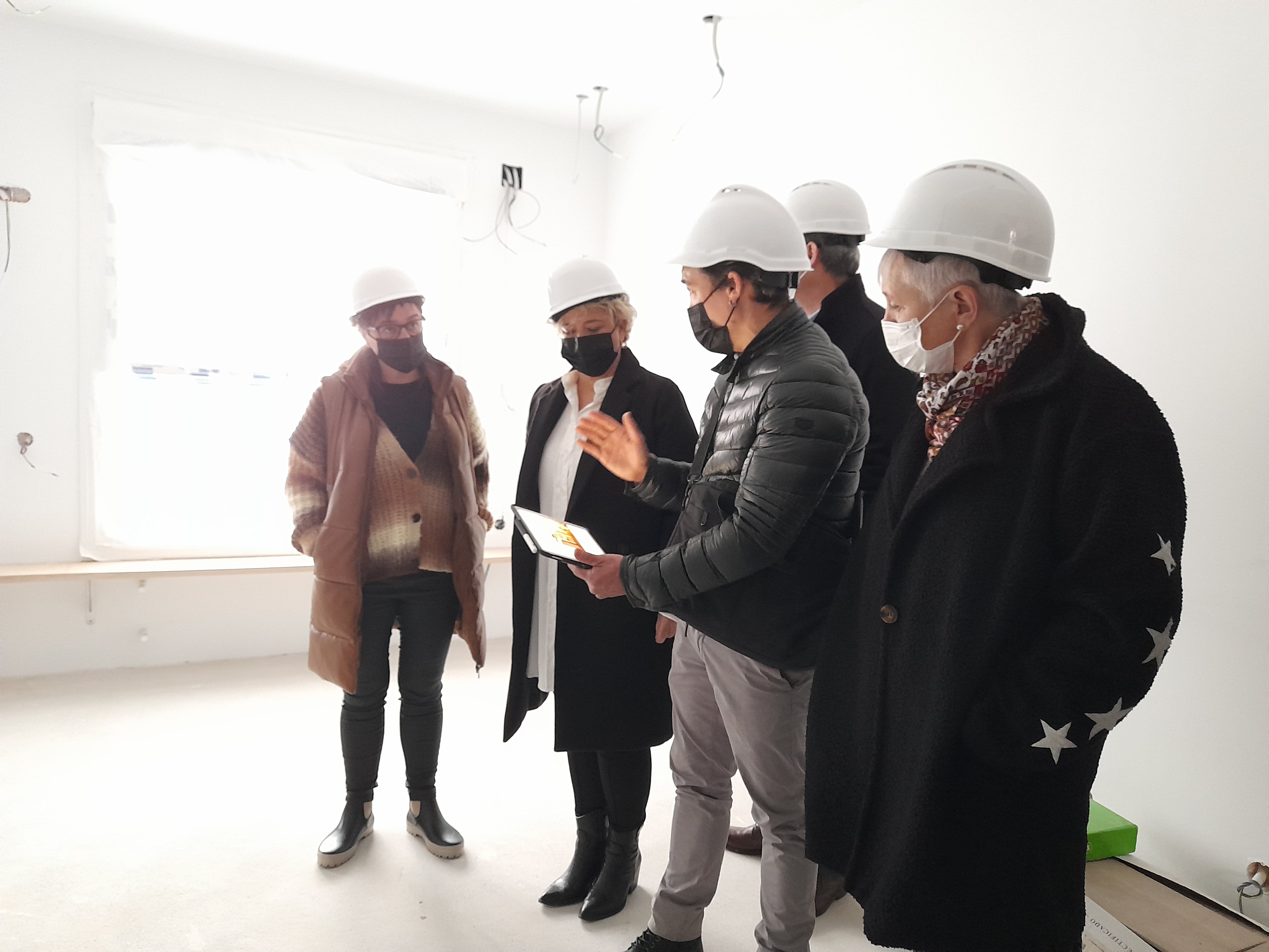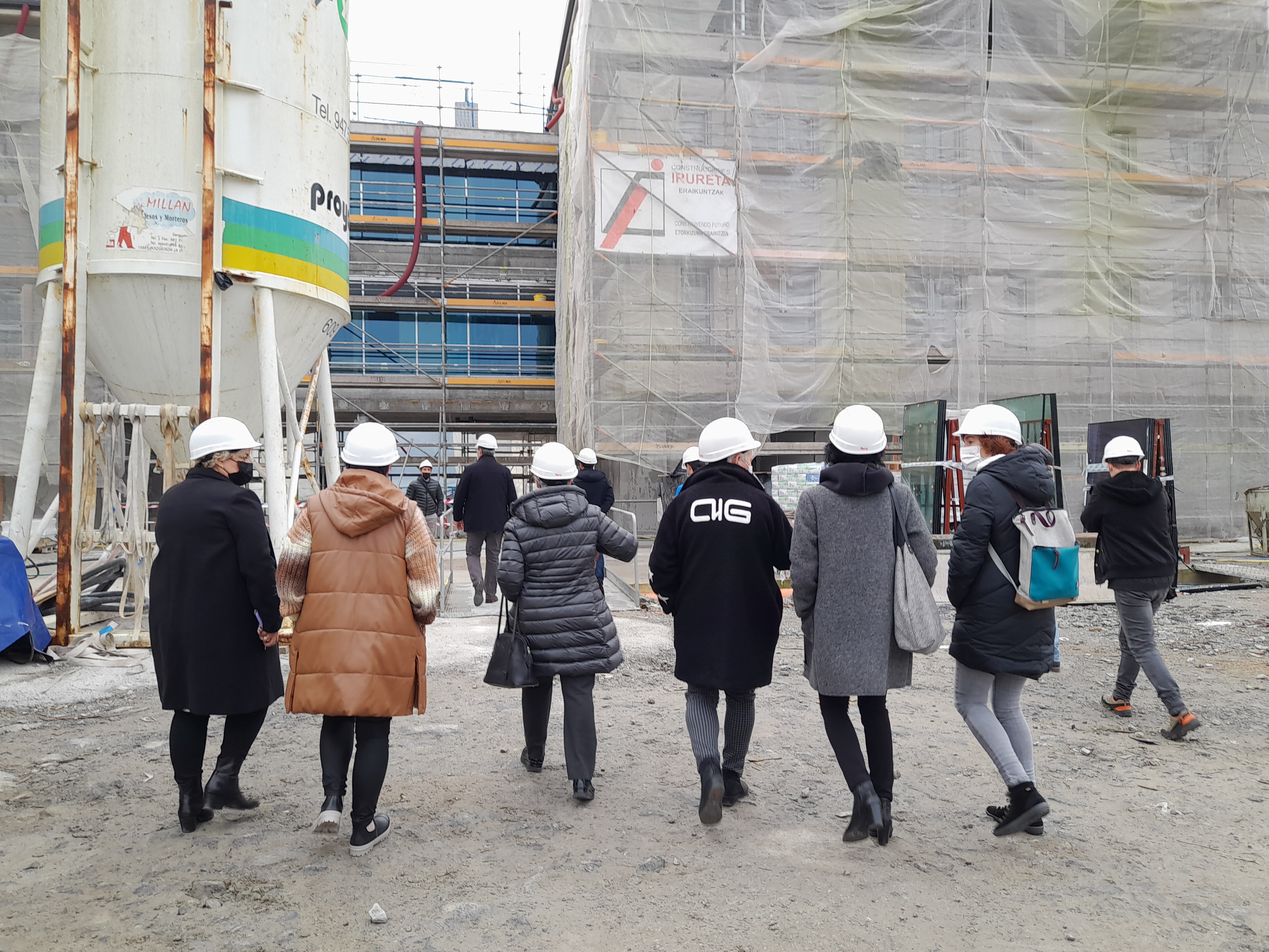(Usurbil, February 4, 2022) By the end of 2022, the new residence that Matia is developing in Usurbil, in collaboration with the Provincial Council of Gipuzkoa and the Town Council of the town, will be up and running. It is a "pioneering and innovative" project, which began its construction in June 2020, and which will house 110 homes for 127 elderly people, "an example of where the model of care in Gipuzkoa is evolving", based on reduced living units that favor the autonomy and personalized attention of the residents. This was explained by the deputy general of Gipuzkoa, Markel Olano, during a visit this morning to the construction site of the new center, where he was accompanied by the deputy for Social Policies Maite Peña, the mayoress of Usurbil Agurtzane Solaberrieta, the president of the Board of Trustees of Matia Mari Carmen Garmendia, the general director of Matia Gerardo Amunarriz, and part of his team.
