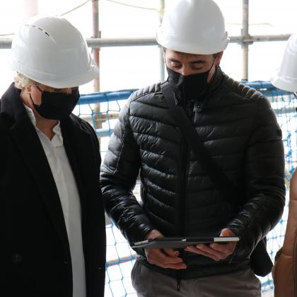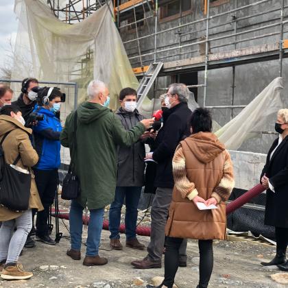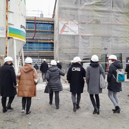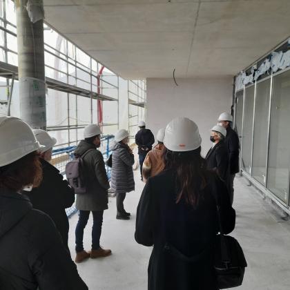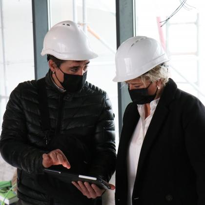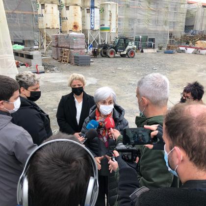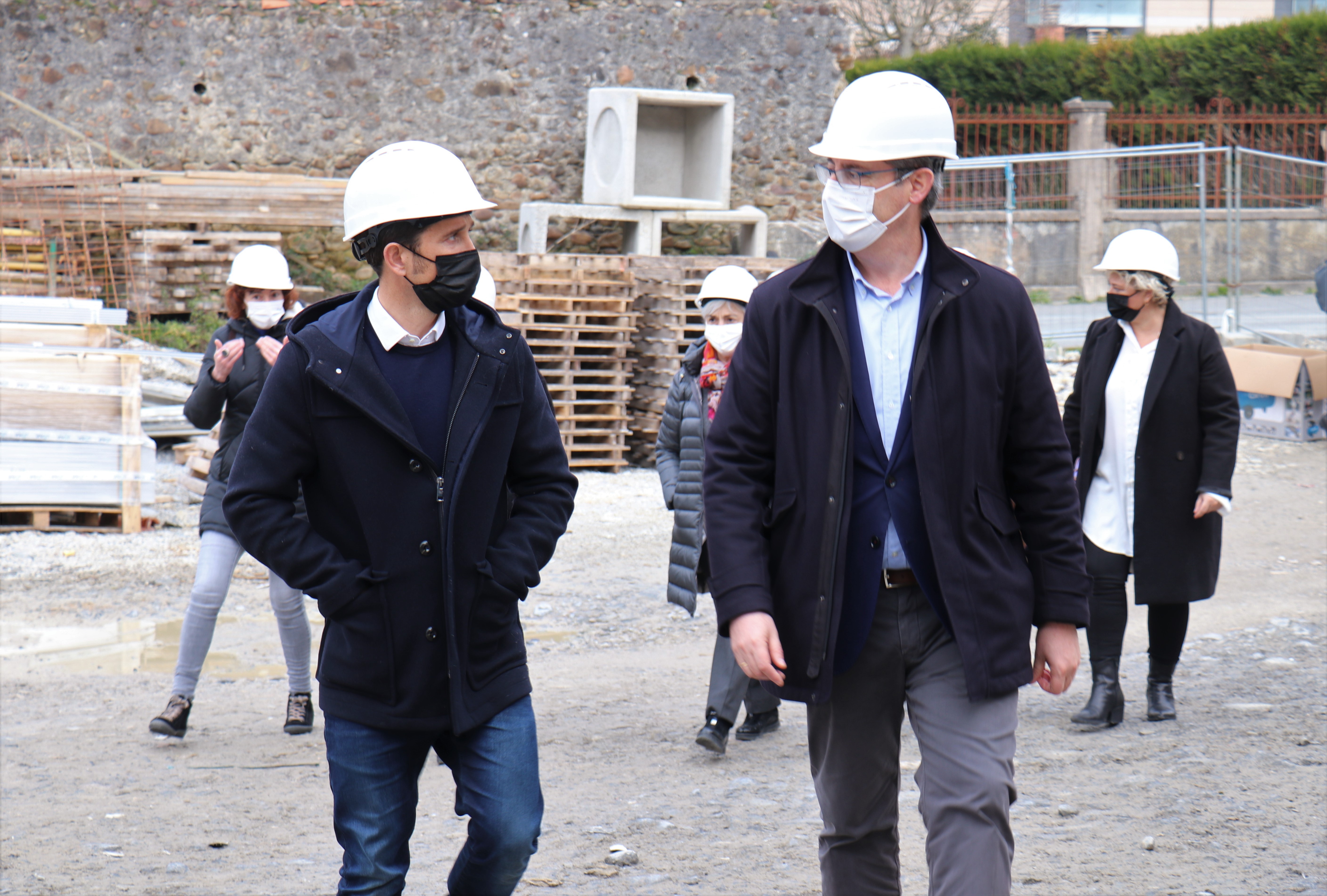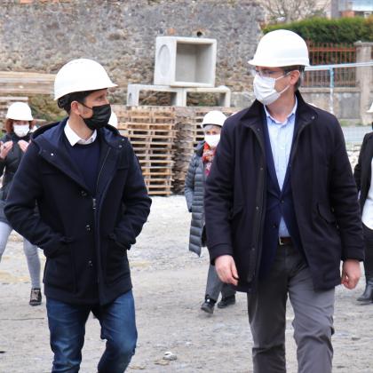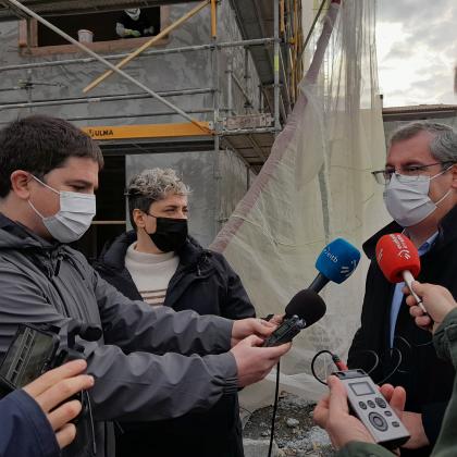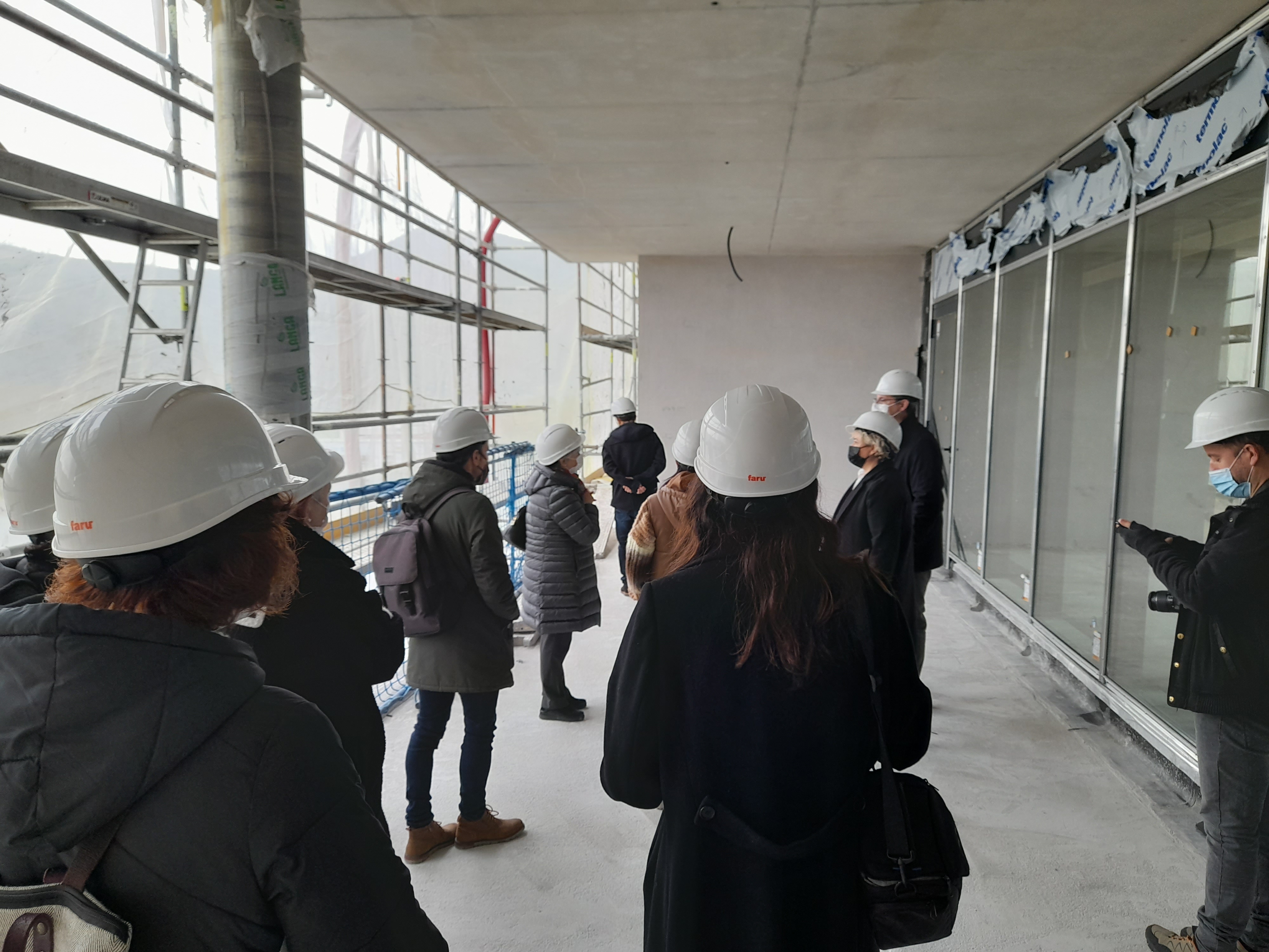 (Usurbil, February 4, 2022) By the end of 2022, the new residence that Matia is developing in Usurbil, in collaboration with the Provincial Council of Gipuzkoa and the Town Council of the town, will be up and running. It is a "pioneering and innovative" project, which began its construction in June 2020, and which will house 110 homes for 127 elderly people, "an example of where the model of care in Gipuzkoa is evolving", based on reduced living units that favor the autonomy and personalized attention of the residents. This was explained by the deputy general of Gipuzkoa, Markel Olano, during a visit this morning to the construction site of the new center, where he was accompanied by the deputy for Social Policies Maite Peña, the mayoress of Usurbil Agurtzane Solaberrieta, the president of the Board of Trustees of Matia Mari Carmen Garmendia, the general director of Matia Gerardo Amunarriz, and part of his team.