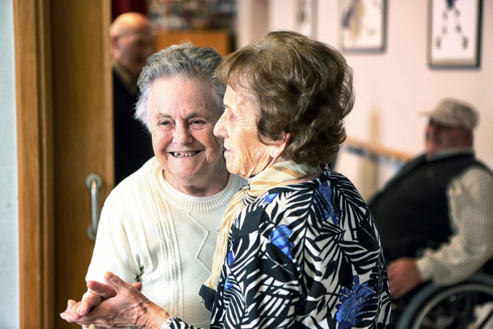 Dos mujeres disfrutan bailando en una de nuestras casas.