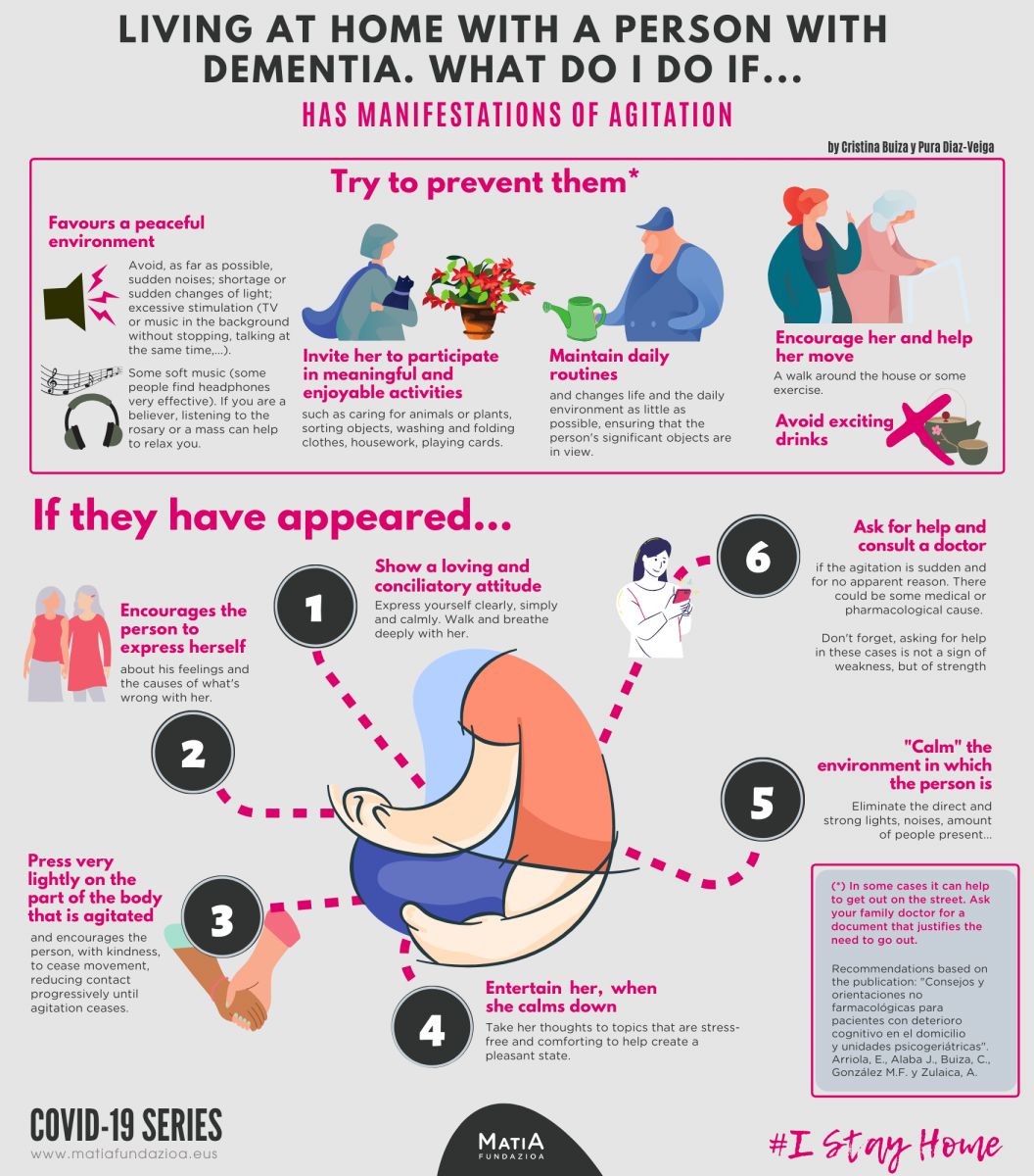 (*) In some cases it can help to get out on the street. Ask your family doctor for a document that justifies the need to go out. Recommendations based on the following readings: "Consejos y orientaciones no farmacológicas para pacientes con deterioro cognitivo en el domicilio y unidades psicogeriátricas". Arriola, E., Alaba J., Buiza, C., González M.F. y Zulaica, A.