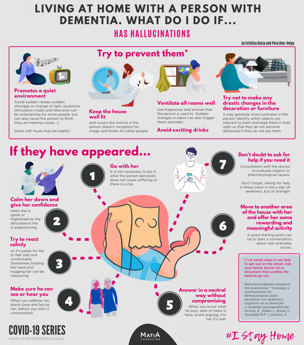 - Go with her. It is not necessary to act if what the person perceives does not cause suffering or there is a risk.
