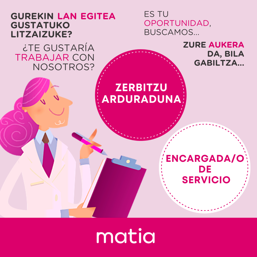 Matia Fundazioak 130 urte baino gehiagoko esperientzia du geriatriaren sektorean. 1.300 profesional baino gehiagorekin, Zumarragako Argixaoko gure zentroan zerbitzu arduradun bat bilatzen ari gara.