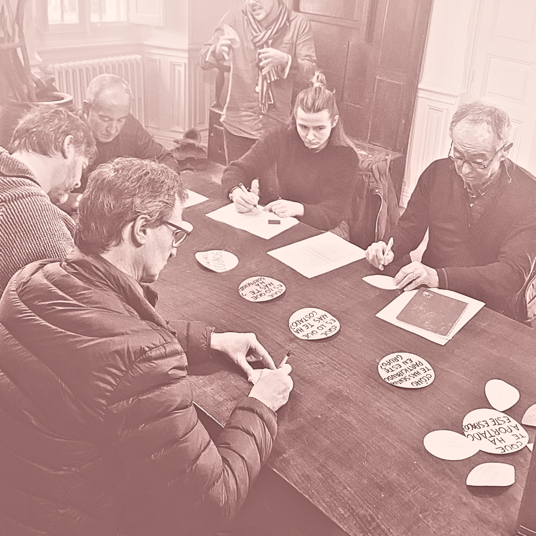 Desde junio de 2023 a febrero de 2024 el pilotaje se ha llevado a cabo a través de un itinerario de sesiones participativas en el que se desarrollan las bases y modos de funcionamiento. Las acciones del pilotaje se han llevado a cabo acompañando a los tiempos y ritmos que siguen quienes participan de cada grupo de colaboración en cada localidad.