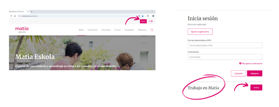 Cambio en el acceso a Matia Eskola. Se mantiene la url www.matiaeskola.eus pero cambia el botón de acceso. Para que veáis de primera mano el cambio de acceso, adjuntamos unas imágenes que lo explican: