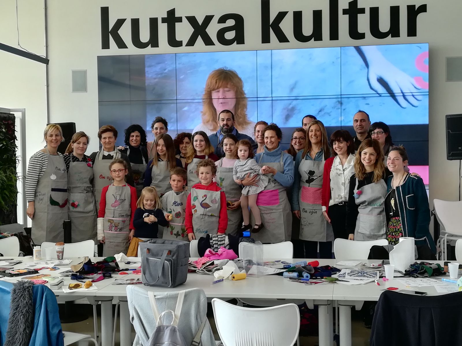 En el taller customizamos delantales, con las técnicas que nos enseñaron. Aquí tenéis algunas fotos para que podáis ver el resultado y el buen ambiente que tuvimos.