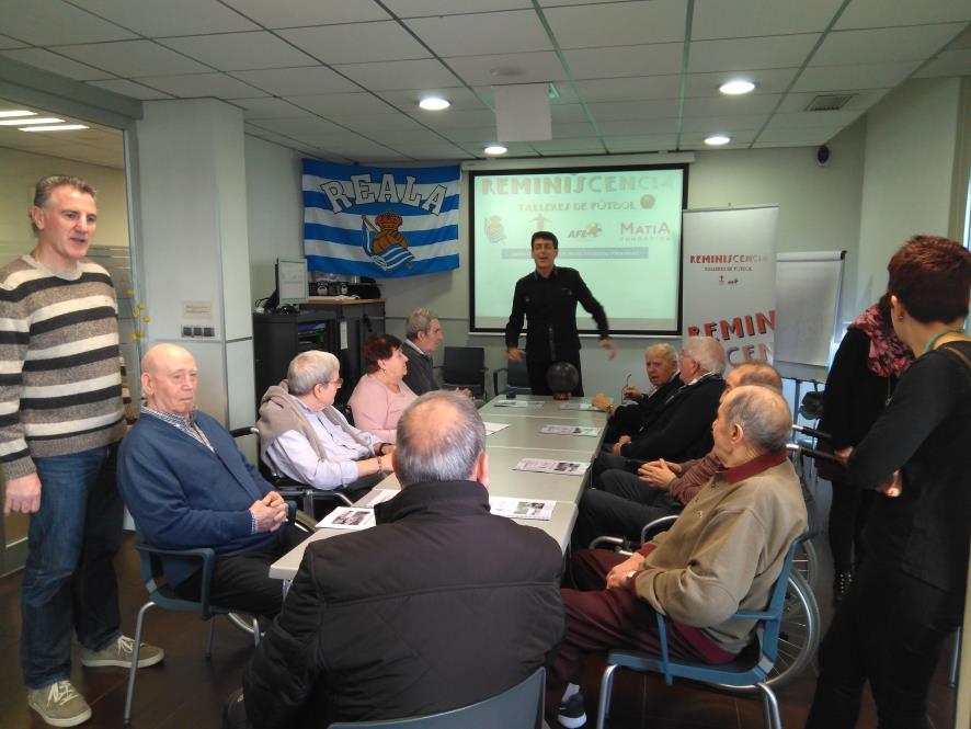 Tras la buena experiencia de Rezola y gracias a la colaboración plena de la Federación Española de Asociaciones de Futbolistas Veteranos, Real Sociedad Fundazioa y Veteranos de la Real Sociedad podemos repetir este taller de reminiscencia basada en el fútbol en el centro Otezuri. Lo hemos titulado...: ENTRENANDO LOS RECUERDOS.