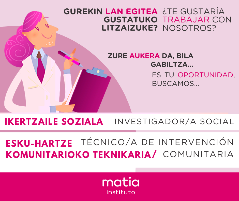 Matia Fundazioa somos una organización con más de 130 años de experiencia en el sector de la geriatría. Contamos con más de 1200 profesionales, y actualmente buscamos incorporar a nuestro equipo a 2 personas para trabajar en el Centro de Investigación de Matia en Guipuzcoa.