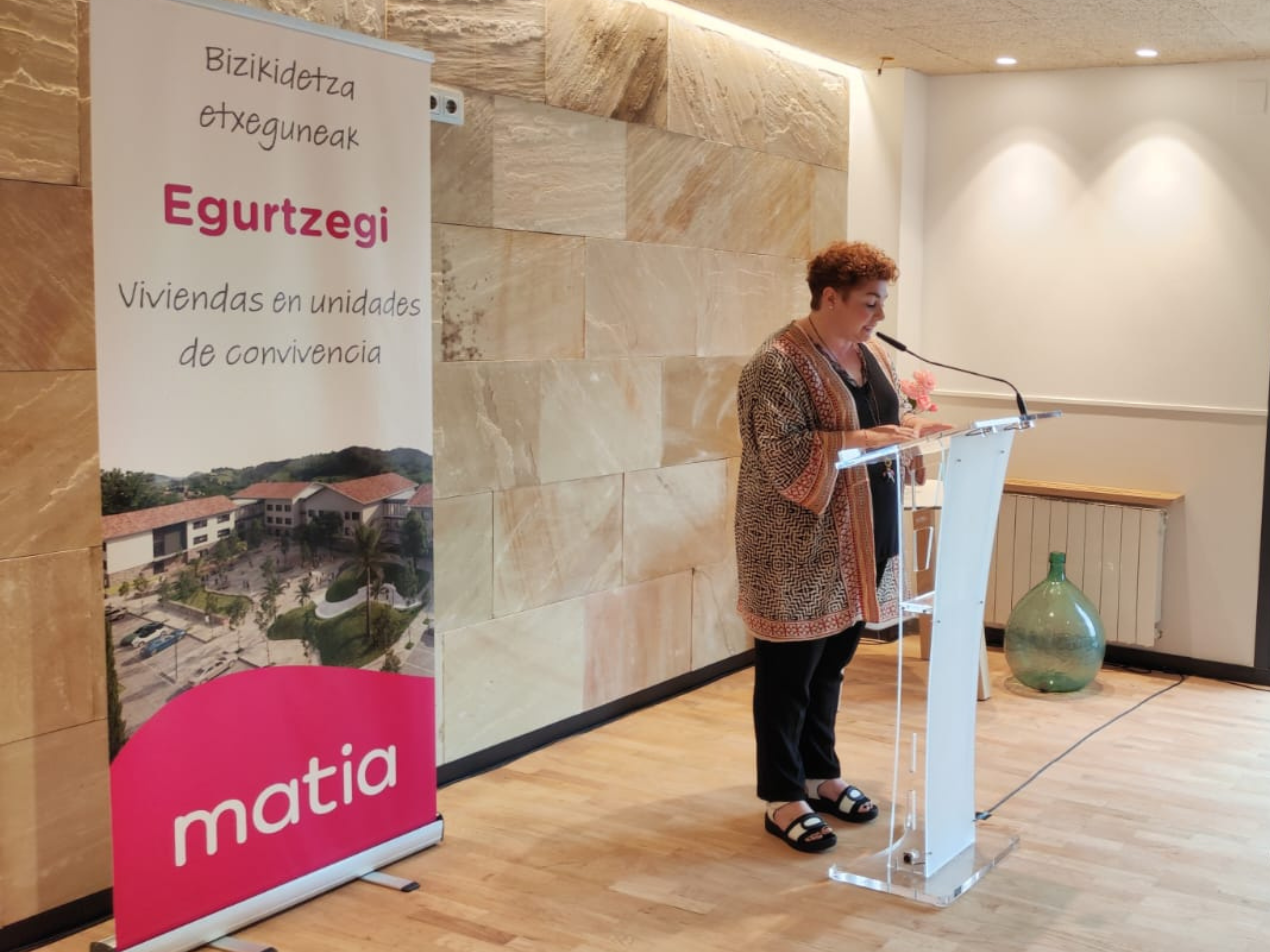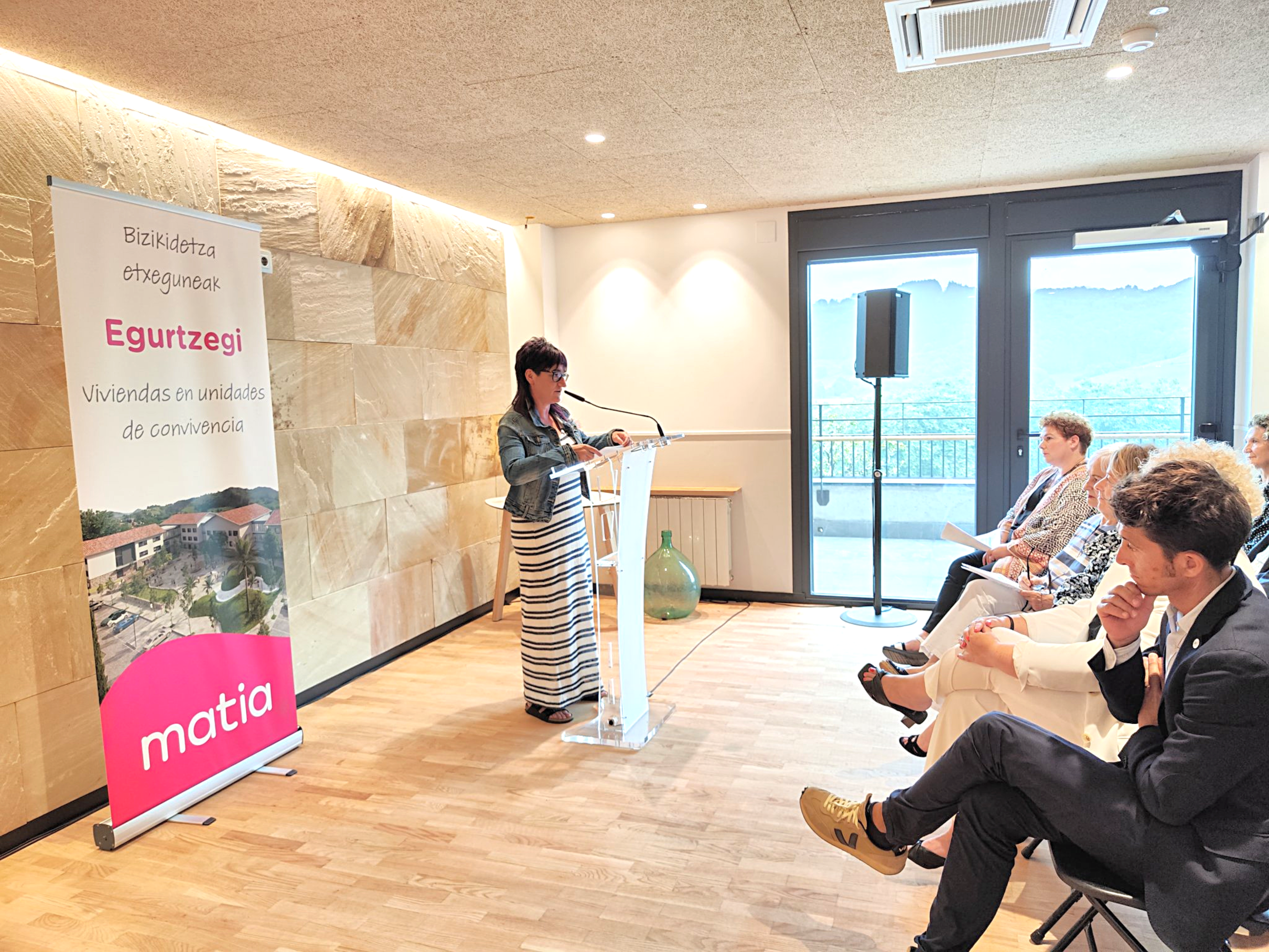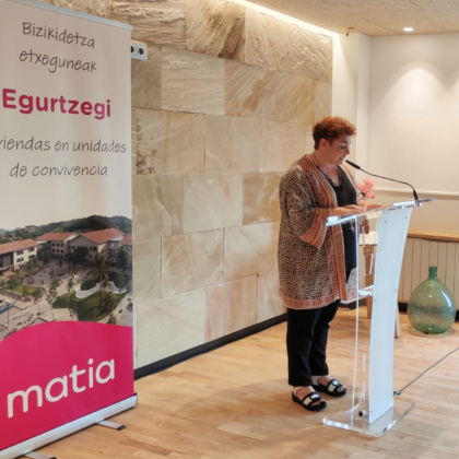 Donostia – San Sebastián a 11 de julio de 2023. Esta mañana se han inaugurado oficialmente las Viviendas en unidades de convivencia de Egurtzegi, ubicadas en el municipio de Usurbil. Un acto en el que Mari Carmen Garmendia, (presidenta del Patronato de Matia) ha sido la encargada de dar la bienvenida a todas las personas asistentes. Entre ellas, a los representantes de las instituciones que han apoyado este innovador proyecto, Eider Mendoza (Diputada General) y Agurtzane Solaberrieta (alcaldesa de Usurbil).