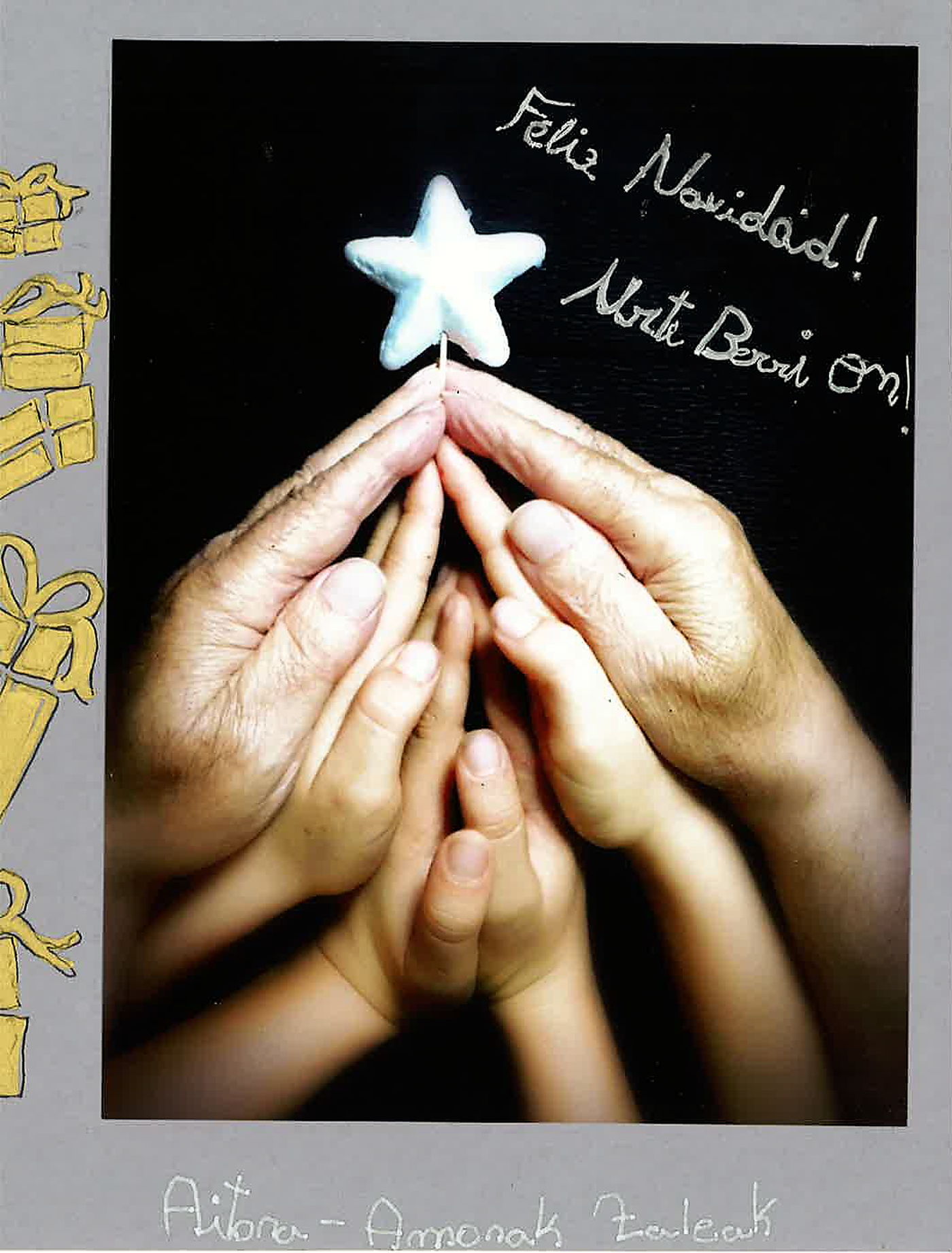 - Y el primer premio, y por tanto la ganadora y la que utilizaremos desde Matia Fundazioa para felicitar la Navidad, es la de Maider Salazar, de 13 años.
