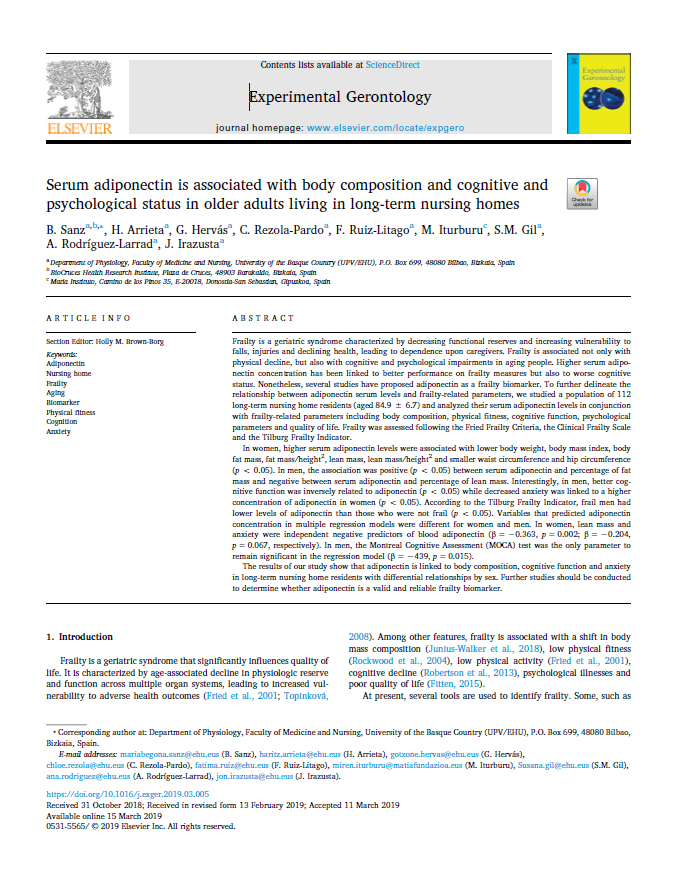 Autor: Sanz, B., Arrieta, H., Hervás, G., Rezola-Pardo, C., Ruiz-Litago, F., Iturburu, Miren, Gil, S.M., Rodríguez-Larrad, A., Irazusta, J.