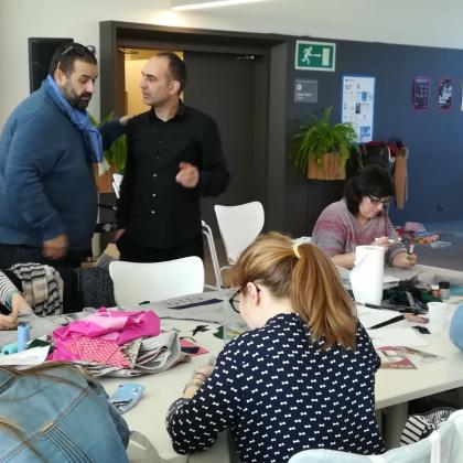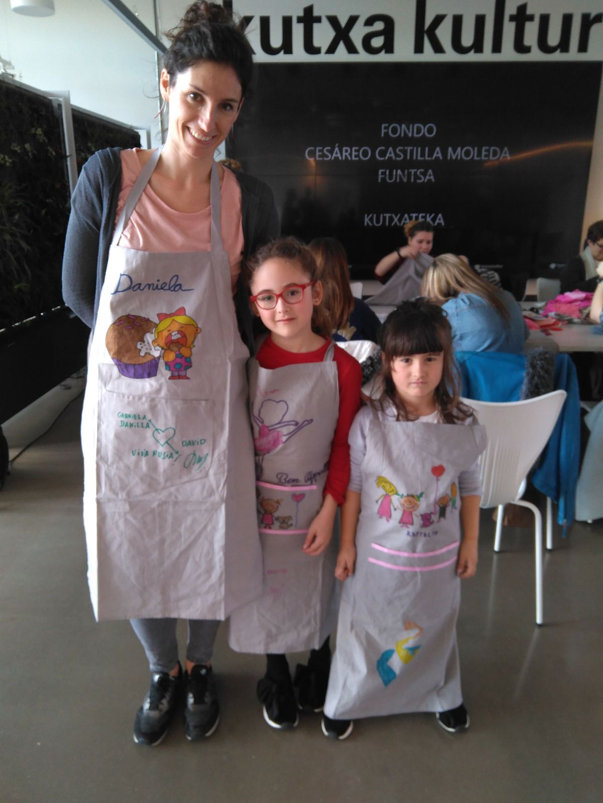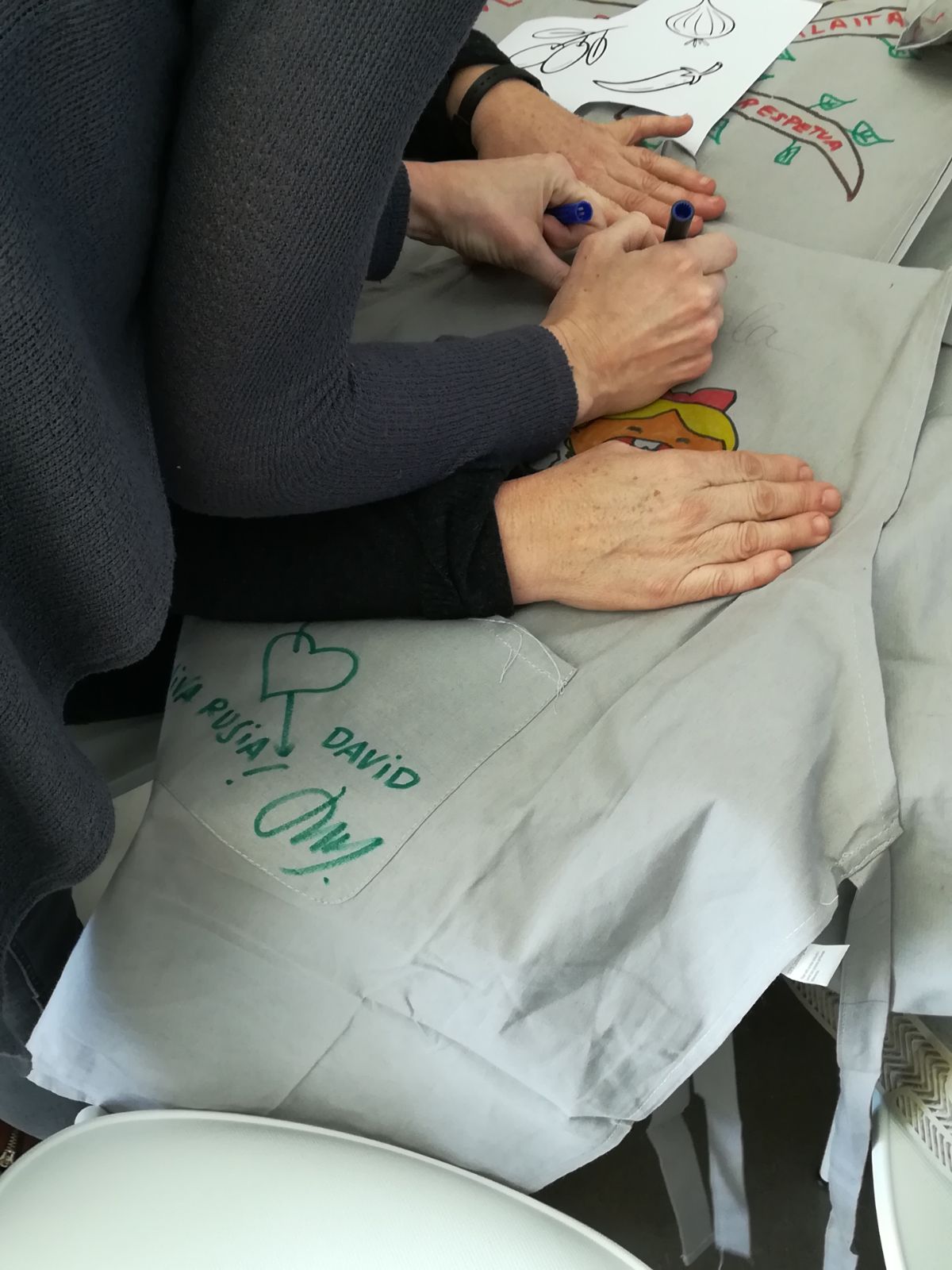 Tailerrean aurreko-mantalak kustomizatu genituen erakutsi zizkiguten teknikekin. Hona hemen argazki batzuk emaitza ikusi ahal izateko zuek eta izan genuen giro ona.