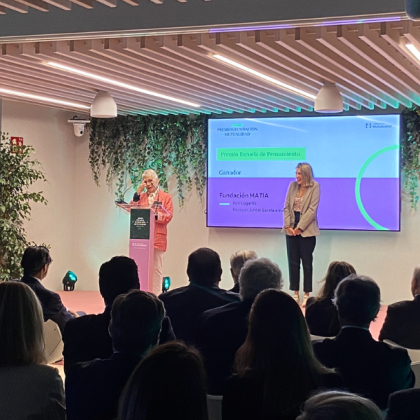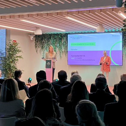 Matiatik Madrilera joan dira saria jasotzera, Iraide Robles, Lugaritzeko etxebizitzen kasuen kudeatzailea eta Juncal Garate, etxebizitza-eredu berri honetan bizi den bizilagunetako bat. Maria Carmen Garmendia Lasa Matiako patronatuko lehendakariarekin batera.