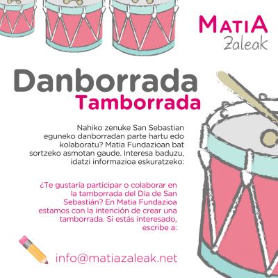 Donostian festa garrantzitsu bat San Sebastian eguna da, danborrada ospatzen den eguna eta patroiari omendu. Nahiz eta sormenaren inguruan hipotesi ezberdinak egon, egia da 1836 urtez geroztik ospatzen dela. Urte guzti hauetan konpainia, elkarte, erakunde eta abarrek beraien danborradak sortzen joan dira. Eta pentsatu dugu Matia eta bere lagunek baita ere bat merezi dugula. Horregatik iada martxan jarri gara eta 60 pertsona baina gehiagok...