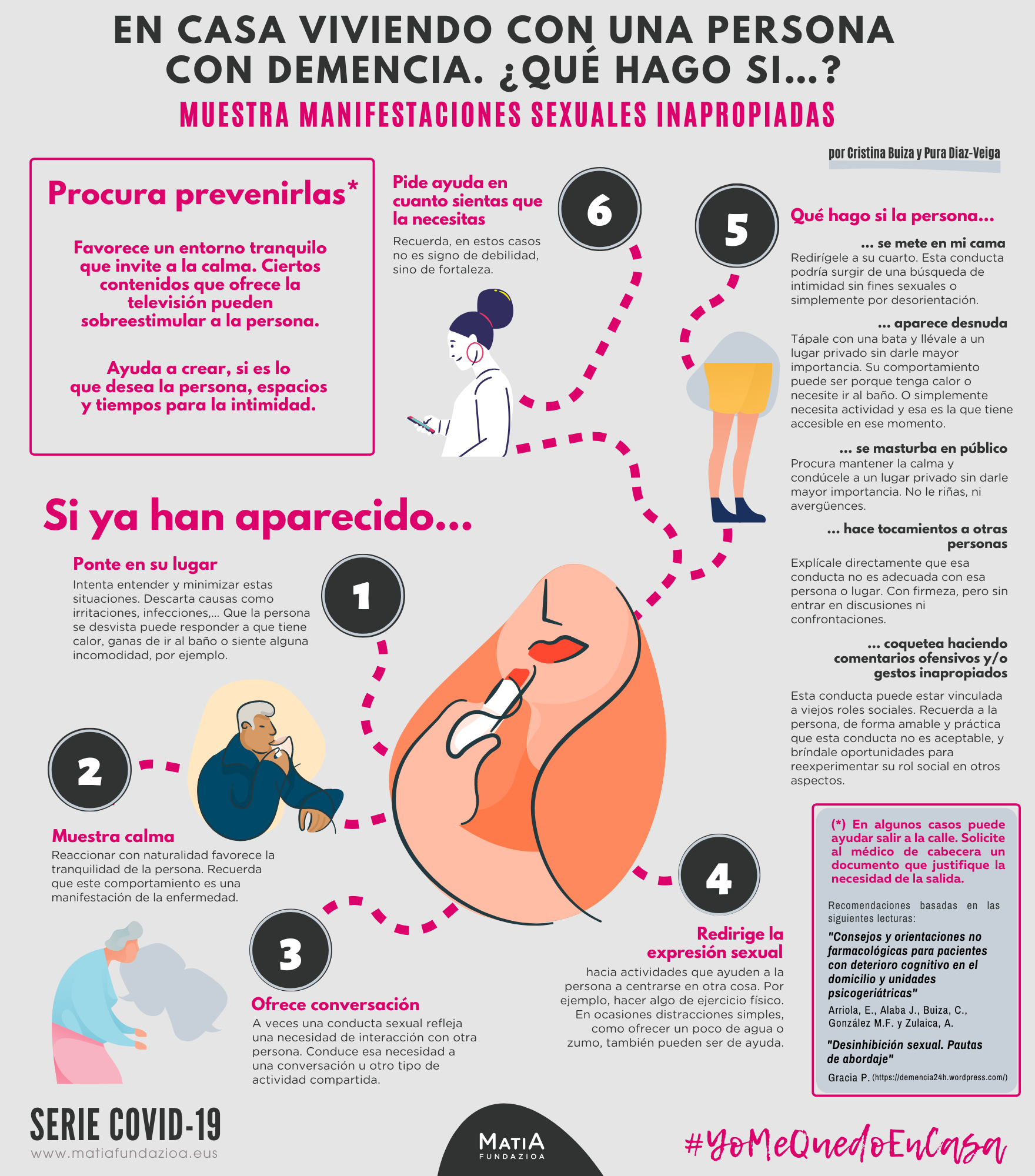12.05.2020 - Nueva infografía: En casa viviendo con una persona con demencia. ¿Qué hago si la persona…?. Muestra manifestaciones sexuales inapropiadas.