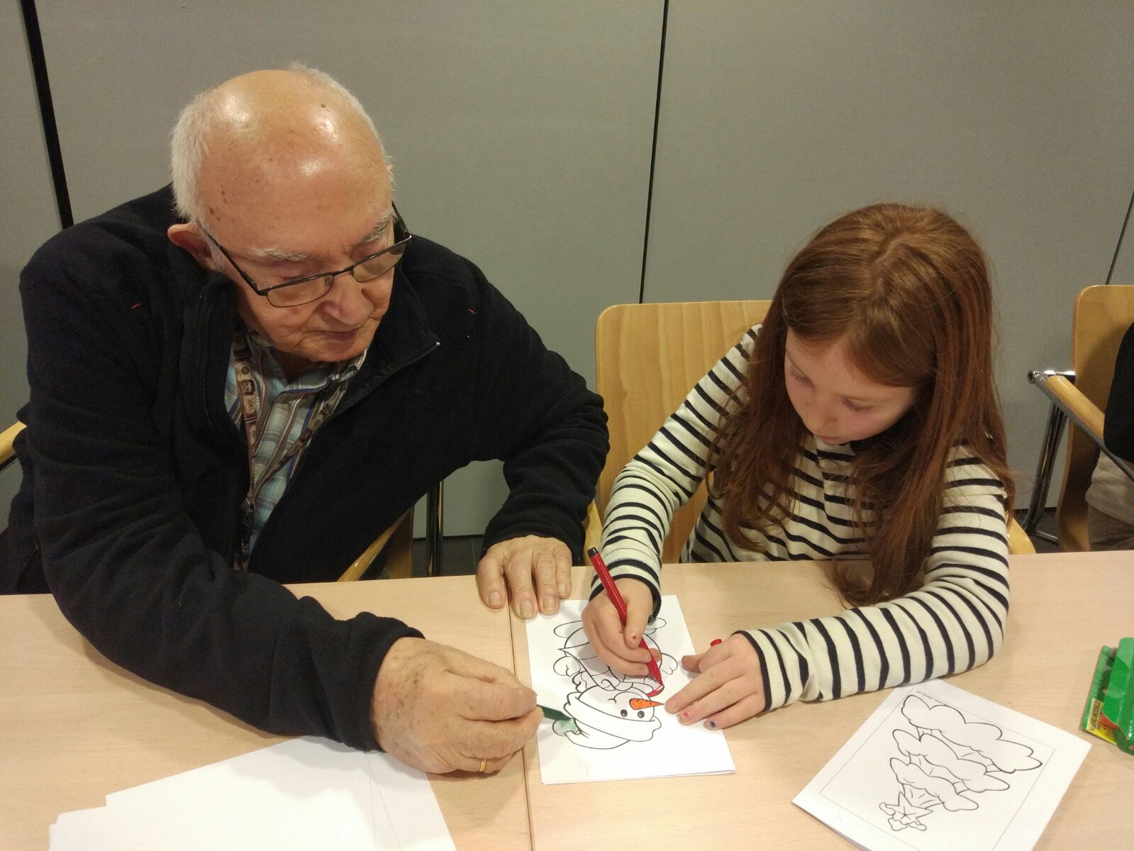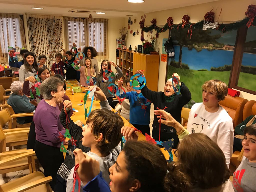 Tal y como os propusimos, este sábado pasado, 16 de Diciembre, en el centro Rezola y dentro del programa de Navidad, hicimos un encuentro entre mayores y pequeños. Los MatiaZales Txikis estuvieron haciendo actividades navideñas con algunas personas mayores que viven en Rezola: dibujos de Navidad, adornos para el árbol, cuentacuentos… ¡incluso Magdalena nos recitó una poesía!
