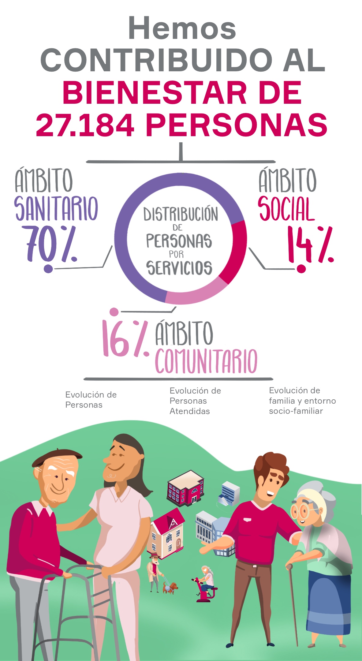 Para medir el impacto de nuestro propósito hemos utilizado la METODOLOGÍA ACUMEN*. Esta metodología nos permite identificar cómo se está produciendo el impacto final de los servicios en las personas. Metodología sencilla que permite la obtención de indicadores de impacto medibles, a la vez que ayuda a realizar una profunda reflexión sobre la actividad de la organización.