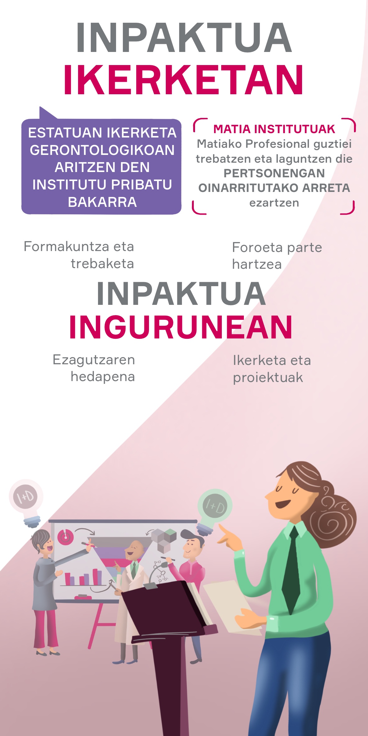 Pertsonei zahartzeko prozesuan laguntzea, haien ongizatea hobetzea xedetzat harturik, eta, horretarako, haien autonomia eta duintasuna sustatuko dituzten ezagutza eta zerbitzu pertsonalizatuak sortzea.