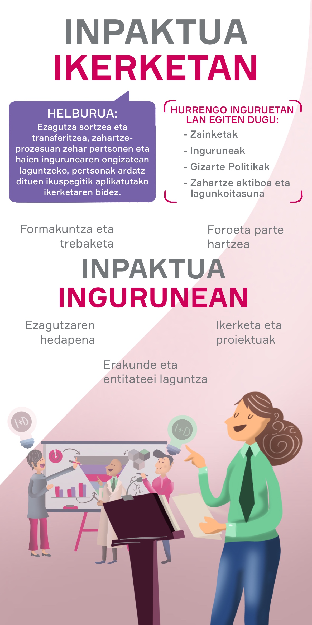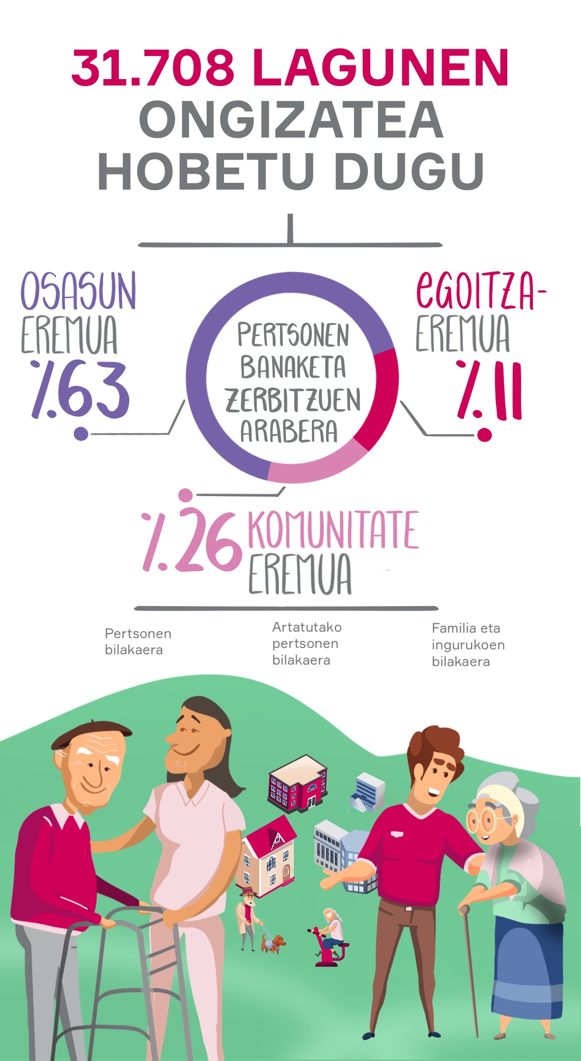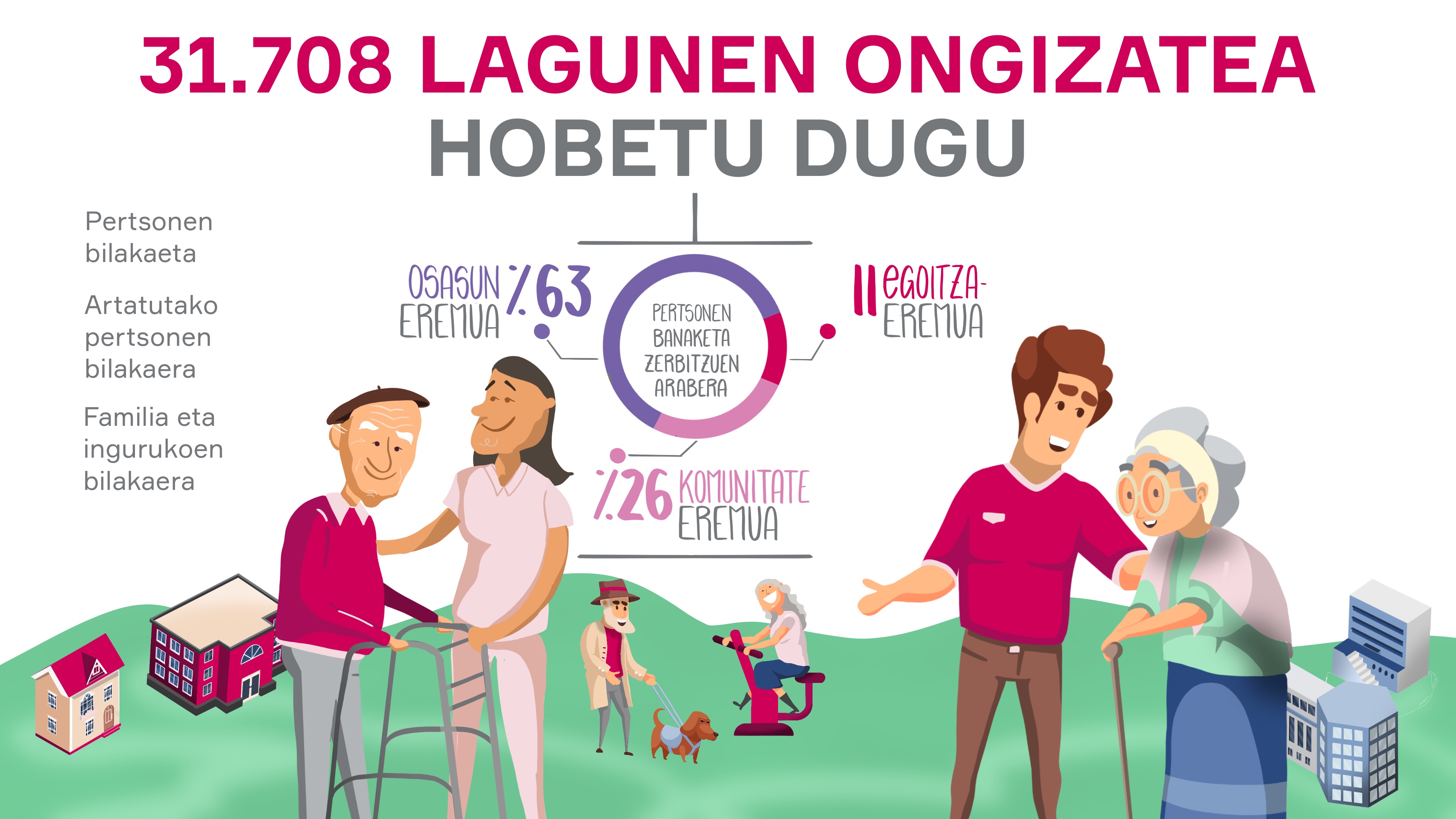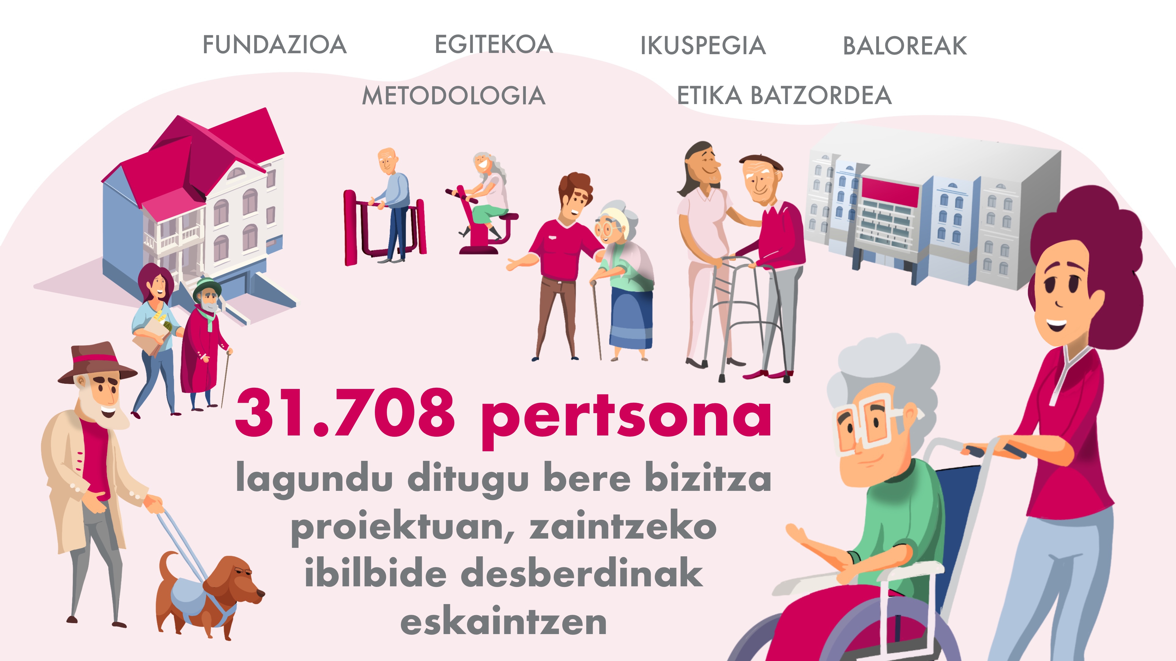 Pertsonei zahartzeko prozesuan laguntzea, haien ongizatea hobetzea xedetzat harturik, eta, horretarako, haien autonomia eta duintasuna sustatuko dituzten ezagutza eta zerbitzu pertsonalizatuak sortzea.