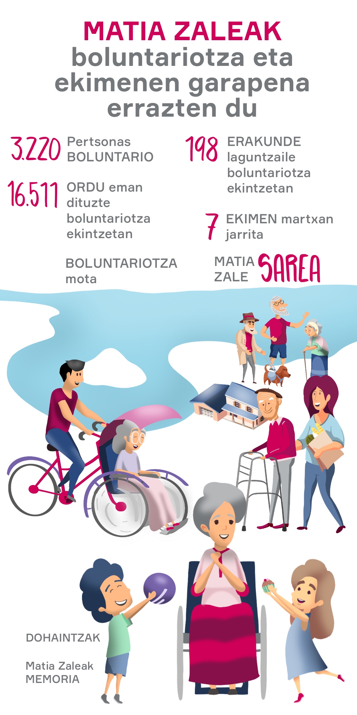 60 Etengabeko eta/edo unean uneko laguntzako boluntarioen kopurua